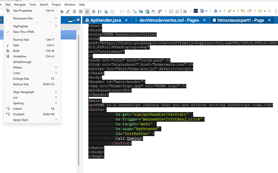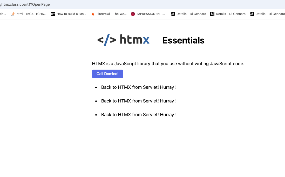 So - here we are, HTMX calls a Servlet on Domino from a classic Web Dev element and replaces parts of the HTML without a full page refresh. Nice, ey?!