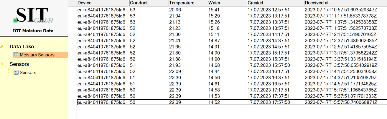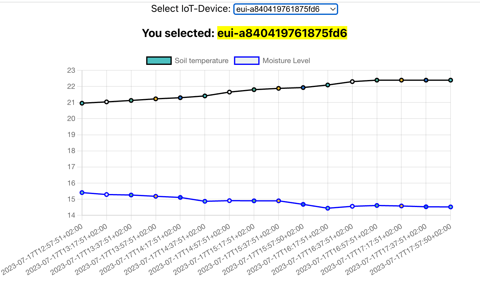 This will help us now to monitor the incoming sensor data and to generate a soil profile for the next months. We will then find out about the right amount of water to balance the moisture content in the desired range using a Node Red based application to interpret the data and make LoRaWAN downlink calls to actors on the watering system.