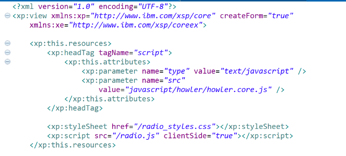 In the XPage we import howler in the resources section: